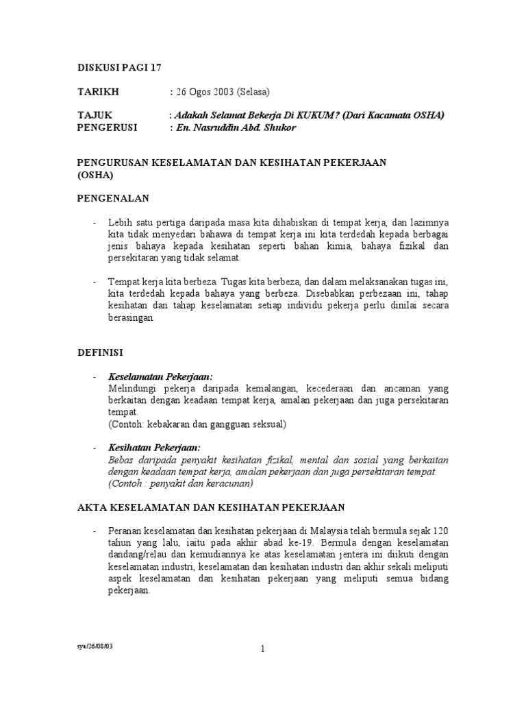 Contoh Assignment Osha Aa Contoh Otosection
